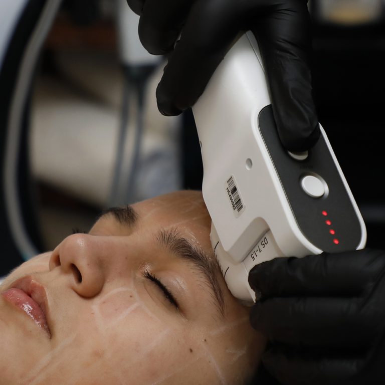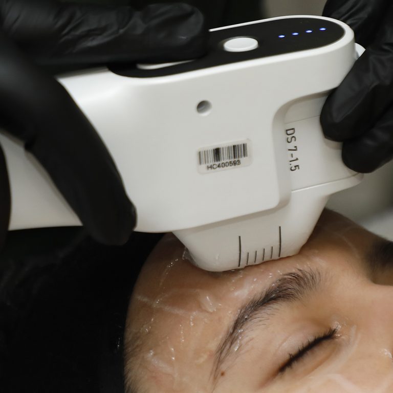 HIFU treatment individually targets brow, jowl and neck lifting, as well as overall skin tightening and rejuvenation.